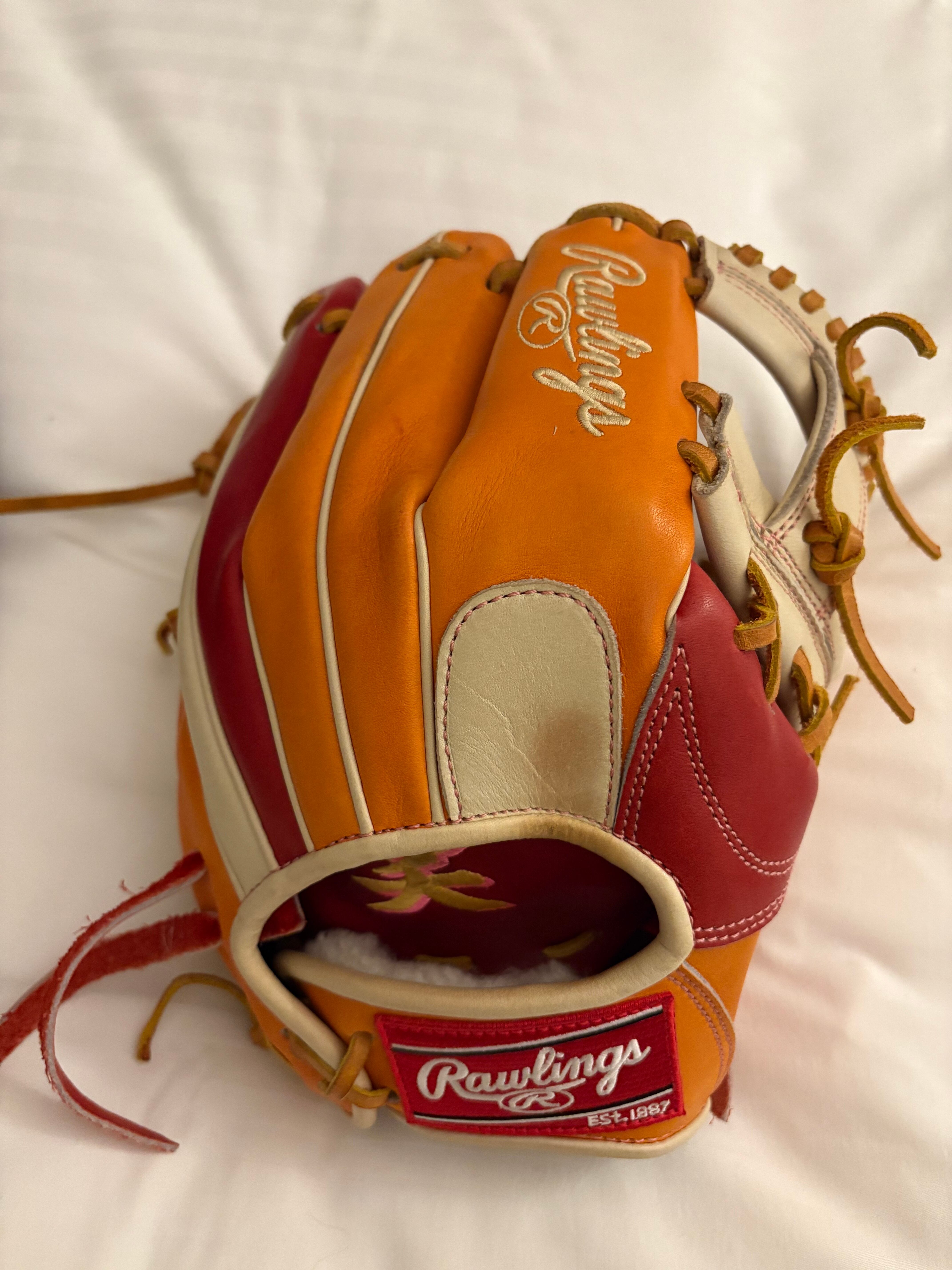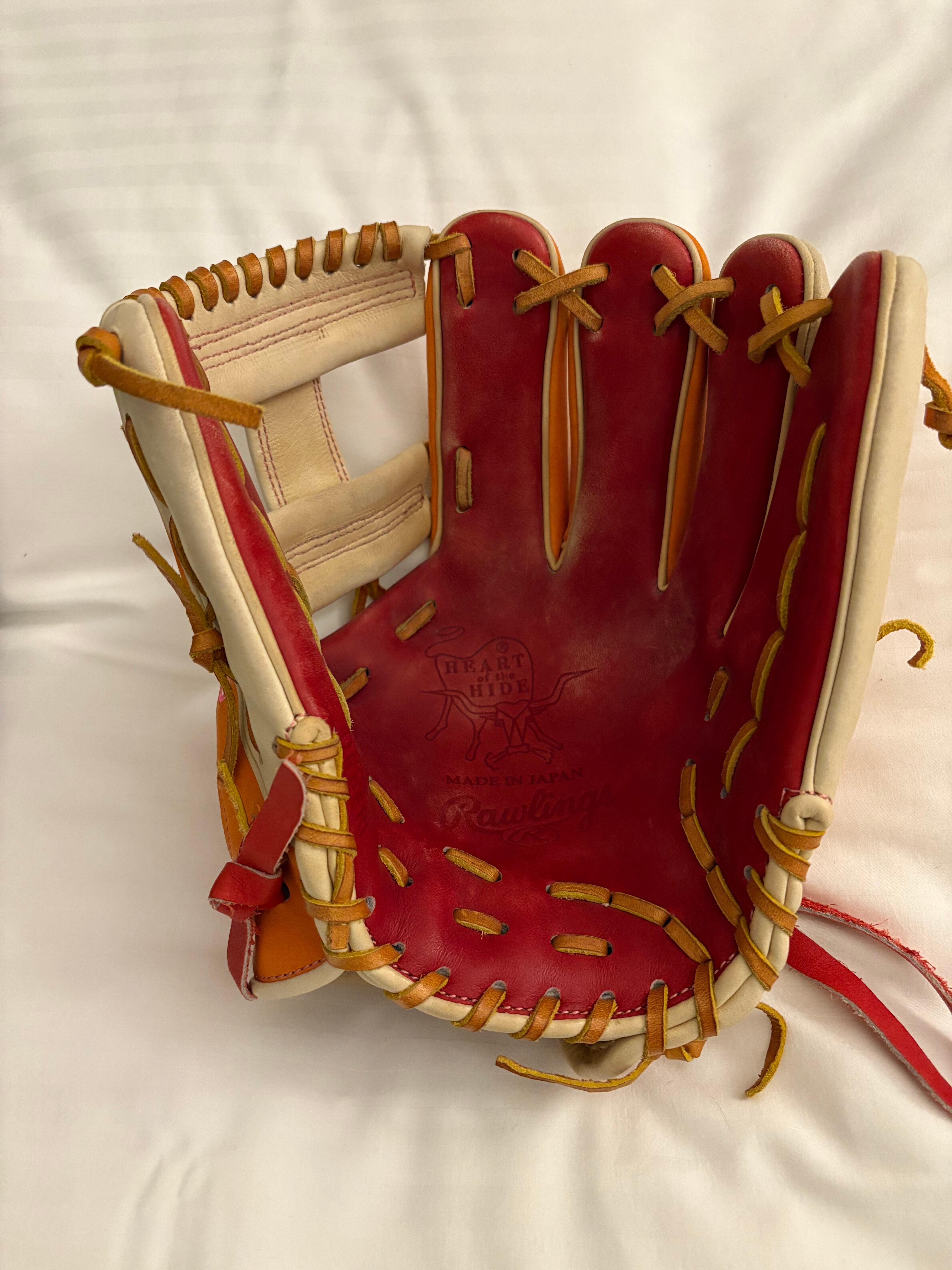 ローリングスジャパンの渥美モデルになります。 現役中に使用していた型をそのままご提供いたします。 特徴 フィット感、軽量を重視しています。 サイズは小さめ 土手から人差し指の先端まで28.5センチ 女性の手に合わせたサイズになっています。 手を入れる部部を狭くしてあります。 (男性の方は手が入らない可能性もあります) ご購入後に3か月程度、お時間をいただいております。 (時期によって変動いたします)